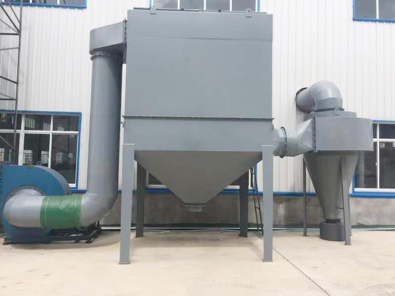 工藝流程:含塵氣體由除塵器進(jìn)風(fēng)口進(jìn)入中、下箱體,通過(guò)濾袋進(jìn)入上箱體過(guò)程中,由于濾袋的各種效應(yīng)作用將粉塵、氣體分離開(kāi),粉塵被吸附在濾袋上,而氣體穿過(guò)濾袋由文氏管進(jìn)入上箱體,從出風(fēng)口排出。而積在濾袋上的粉坐不斷增加,因而使濾袋的阻力逐漸增加,通過(guò)濾袋的氣體量逐漸減少。為了使除塵器能正常工作,就要清除積附的濾袋外壁的粉塵,清灰是由控制器順序觸發(fā)各脈沖控制調(diào),開(kāi)啟脈沖閥,使氣包內(nèi)的壓縮空氣由噴吹管各孔經(jīng)文氏管?chē)娚涞礁鲗?duì)應(yīng)聽(tīng)濾袋內(nèi),濾袋在氣流瞬問(wèn)反向作用下急劇膨帳,使積在濾袋表面的粉塵脫落,濾袋得到再生,被清掉的粉塵落入灰斗經(jīng)排灰斗系統(tǒng)排出機(jī)體。