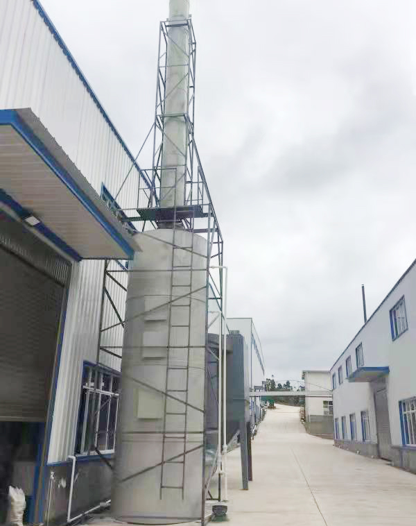 工藝流程:和膏過程中會(huì)產(chǎn)生酸零及粉塵,需要進(jìn)行處理;噴淋式和膏除塵器采用二級(jí)噴淋系統(tǒng)及二級(jí)過濾系統(tǒng),適合處理含少量粉塵的氣體;干凈的水由塔上部噴淋,含塵氣體由塔下部旋流而上;當(dāng)含塵氣體經(jīng)塔下部過濾層時(shí),粉塵與淋濕的過濾介質(zhì)相遇,粘在過濾介質(zhì)表面,同時(shí)氣體的流速帶動(dòng)過濾介質(zhì),使得過濾介質(zhì)旋轉(zhuǎn)、跳動(dòng),可讓過濾介質(zhì)表面各處能充分吸附粉塵,同時(shí)也可讓噴淋液充分沖洗過濾介質(zhì)表面各處,提高過濾面積及效果;經(jīng)過下層過濾層及噴淋系統(tǒng)后,相對(duì)潔凈的氣體再次經(jīng)過上層過濾層,進(jìn)行相同的過濾過程,使得氣體的潔凈程度再次提高;最后氣體經(jīng)過脫液裝置,處理掉氣體中的水分,經(jīng)排放管達(dá)標(biāo)排放。本設(shè)備既滿足合膏的風(fēng)冷卻需要,又滿足環(huán)保排放之要求。